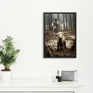 Jesus Running After A Lost Lamb, FRAMED Wall Art Canvas
