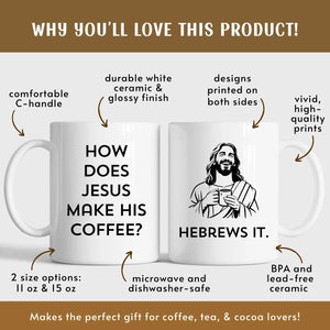 Start your mornings with joy and faith! The “Hebrews It” mug blends humor and inspiration in one perfect sip — a reminder that even coffee can be holy when it’s brewed with love and laughter.